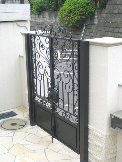 とても重厚感のある 特注デザインの大型門扉です。