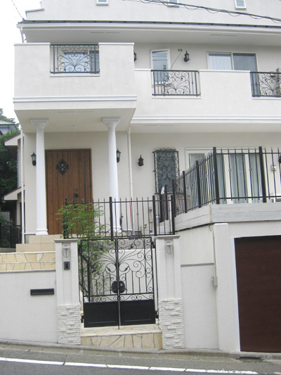 2階のベランダ手摺の唐草とデザインを合わせています。