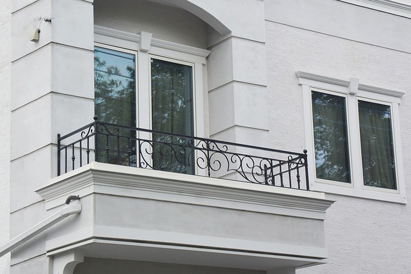 | ● ロートアルミ製 バルコニー(パラペット)手摺と両開門扉 ● |
