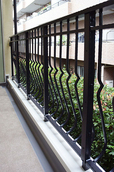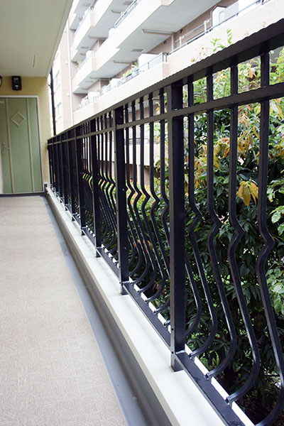 | ロートアルミ製のバルコニー(通路)の手摺 デザインはJタイプです。 |